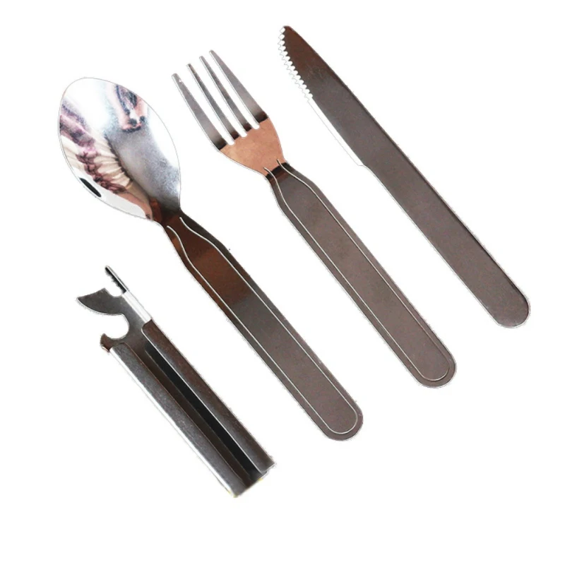 New Arrival Four-piece Camping Outdoor Stainless Steel Cutlery Portable Fork Spoon Camping Hiking P